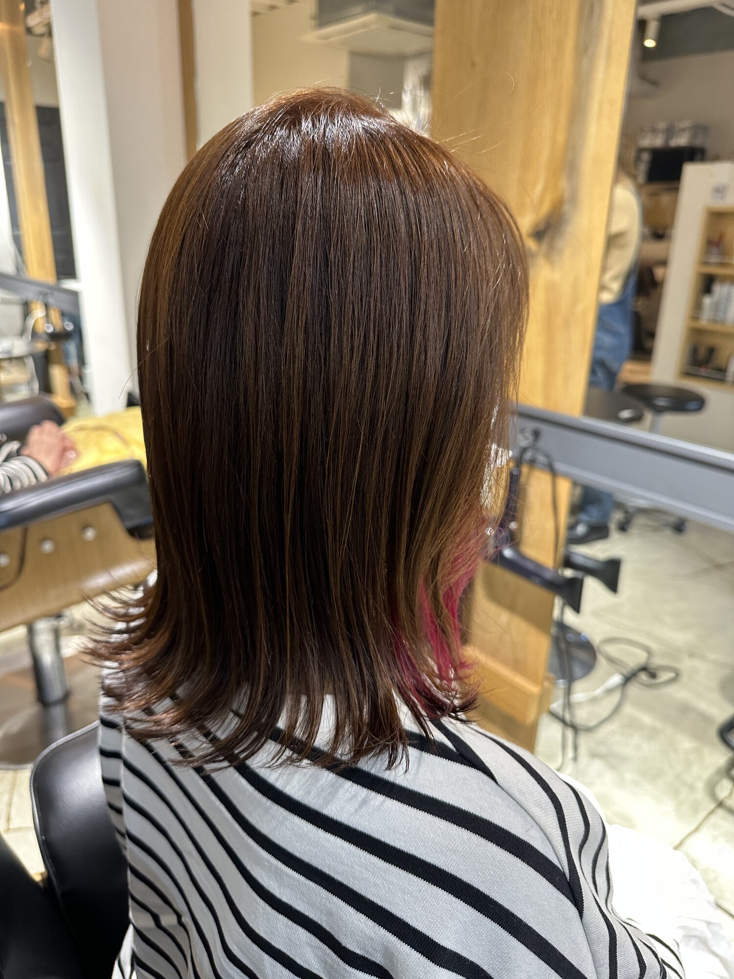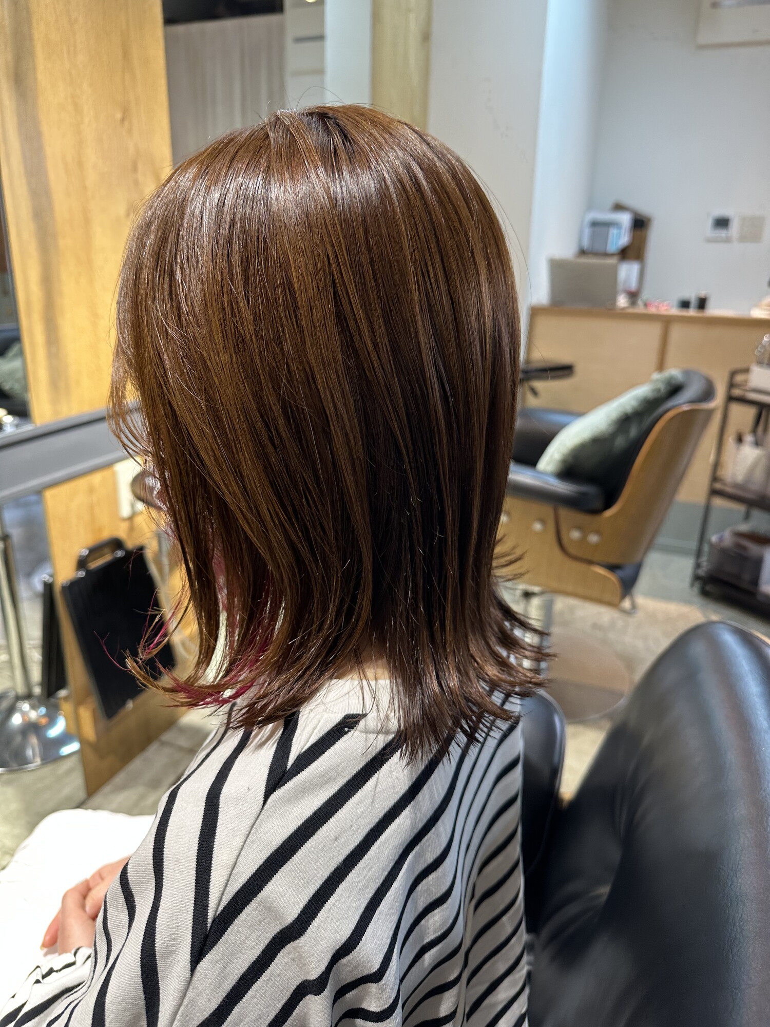 - ミディアムロングインナーカラー ピンク