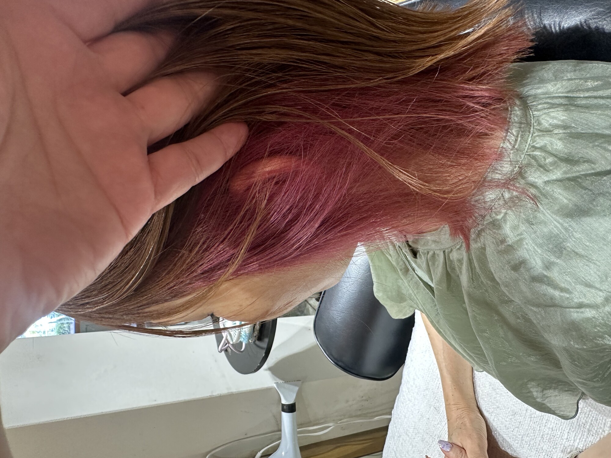 - 年齢とともに出てくる癖を美髪ストレートで抑えて、全体の印象が明るくなるピンクインナーカラー
