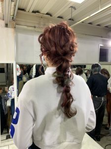 講習の内容は、インナーカラーや、ユニコーンカラーなどのデザインカラーをして、カラーを生かした編み下ろしにアップしていくという内容です
