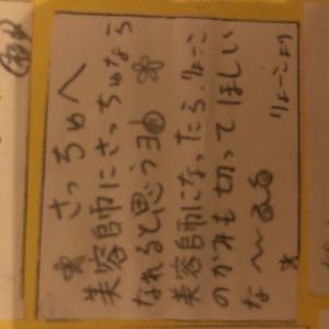 私はもちろん美容師(なぜかネイリストも)と発表していて、その、スピーチを聞いたクラスメイト全員からメッセージがもらえるというものでした
