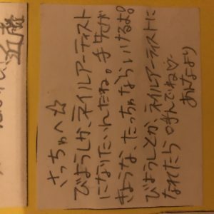 - その時は「こんなんかくのー?」とか言ってめんどくさがってたなぁとかあんちゃんとこの前話してました(笑)でも今見たらとっても嬉しいし、いい思い出です励みになります