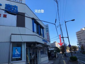 左手に河合塾がみえます