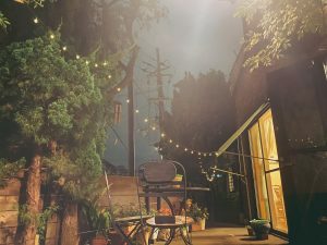 お庭で、