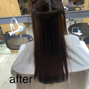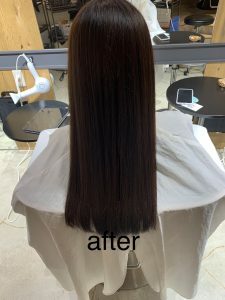 毛先に少し癖が残っているので、今回は毛先までのストレート(縮毛矯正)をお勧めさせていただきました。