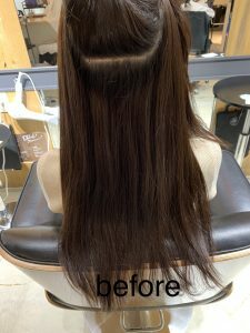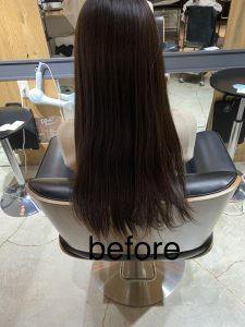 3ヵ月程前に他店でストレートパーマをされていて、今回は根本のにストレート施術するか、毛先までストレート施術するか迷い中のご様子でした。