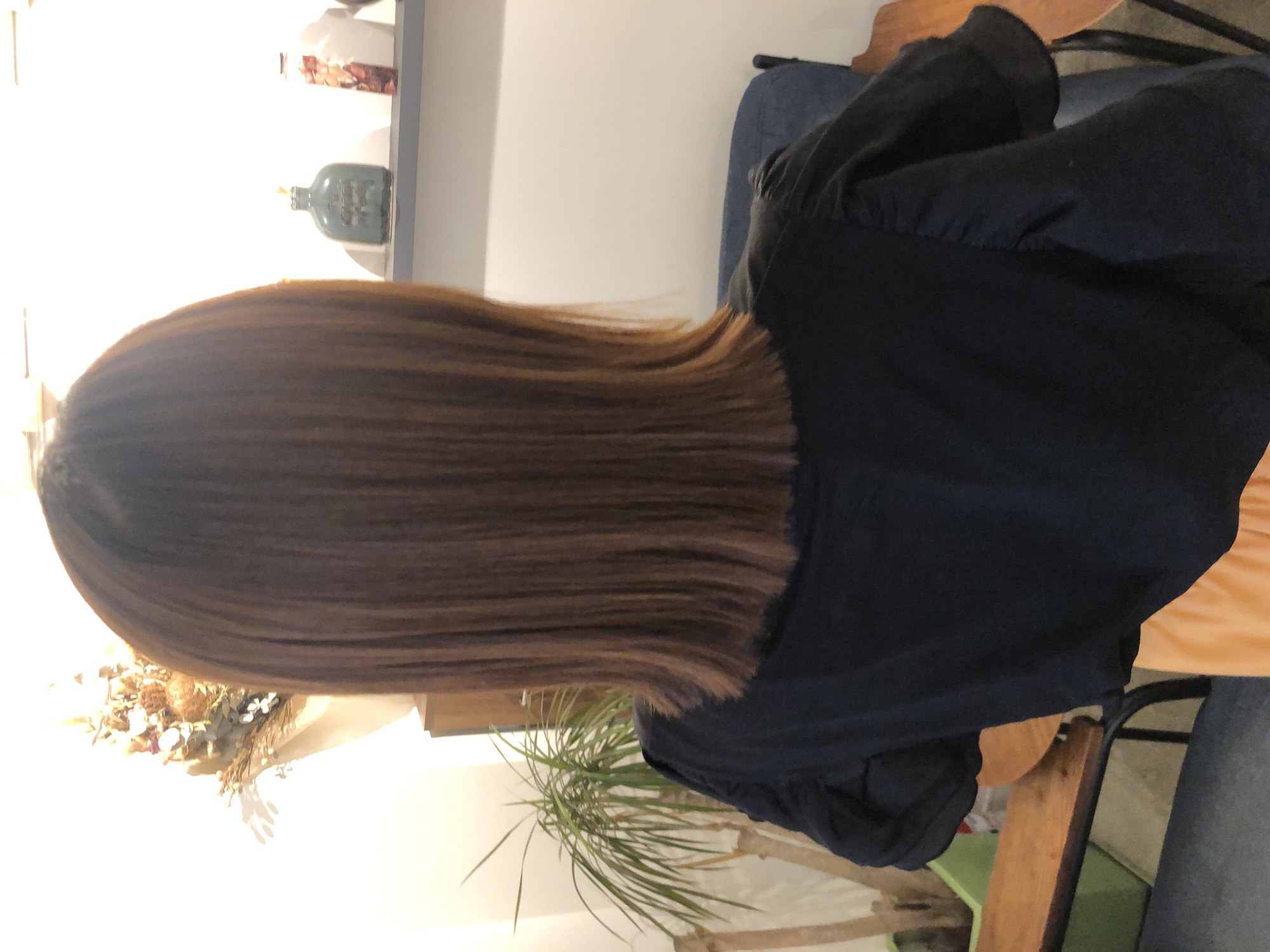 今まではスーパーロングでしたので、ゆるふわ巻きをしたり、柔らかい印象のふんわりスタイルでしたので、特にストレートに興味は持たれていなかったようです。