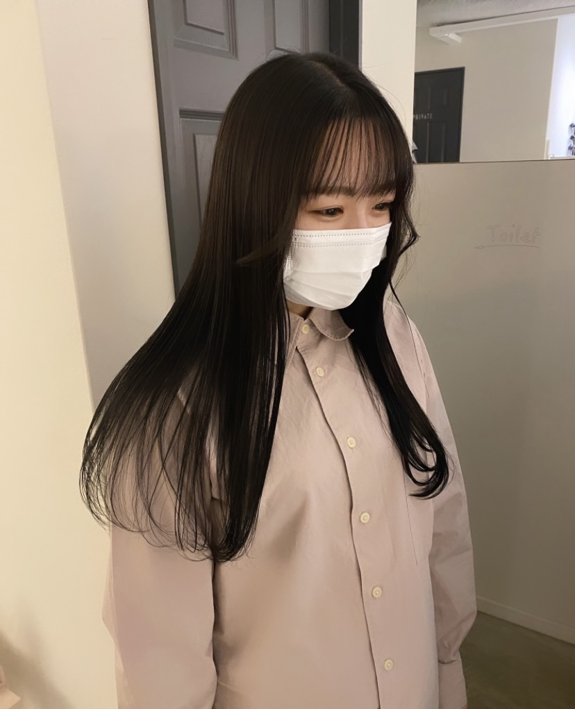 透明感のあるカラーやいつも少しエッジの効いたお色にしたい願望はあるのですが、ブリーチは痛むからやめておきなさいというご両親の意向を守っておられます♡そのおかげか、ツヤハリのある髪質です!ベースは8レベルくらい。