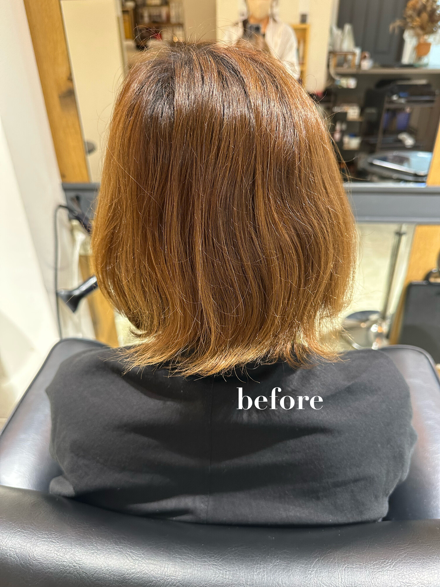 こちらのお客様のbeforeは褪色してオレンジ味がでている状態です。