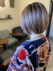 丸みショートボブ×アッシュカラー