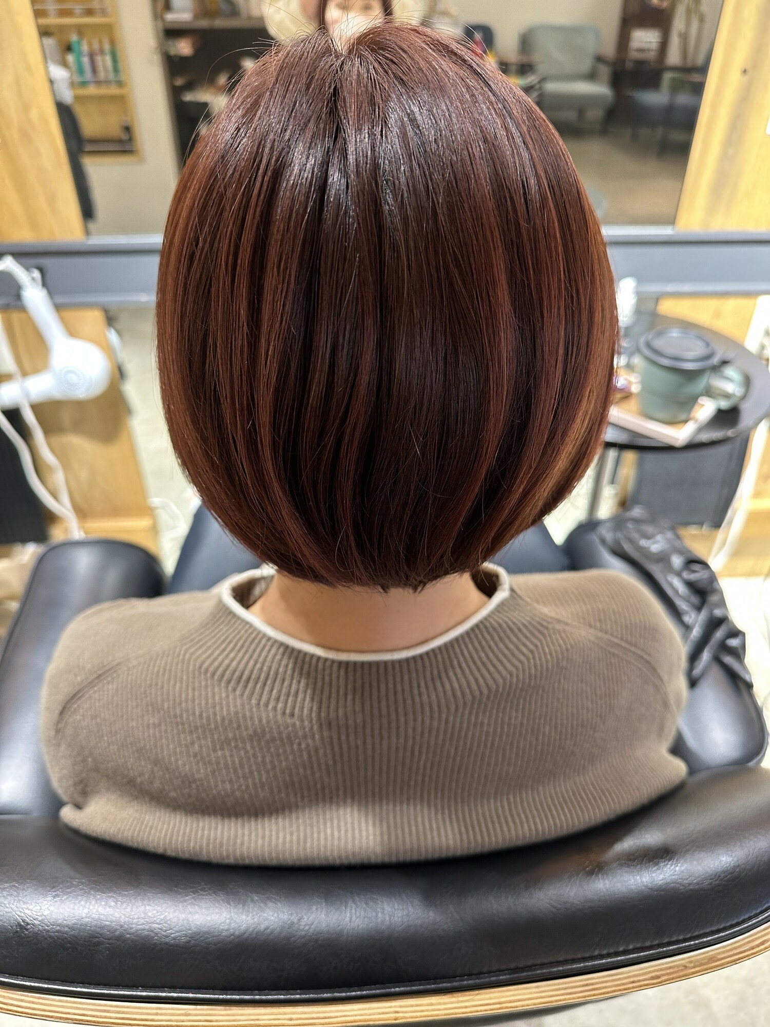 - 褪色すると黄色くなりやすい方にピンクベージュカラーおすすめです。色落ち過程も艶っぽくきれいです。 大人のあごラインのボブ。