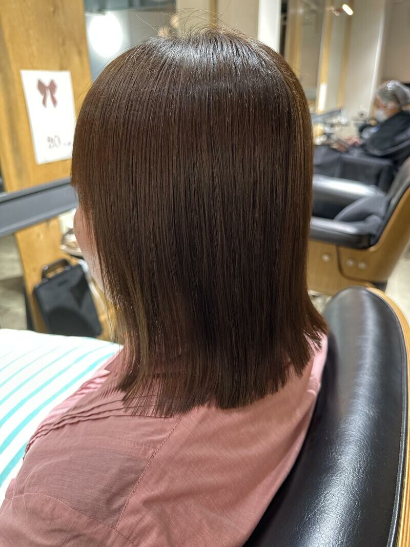 - ツヤと手触りを重視したストレートボブ。