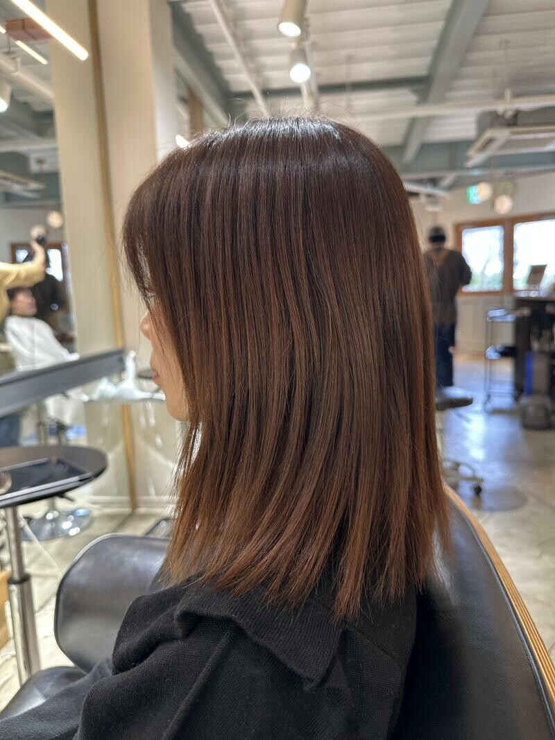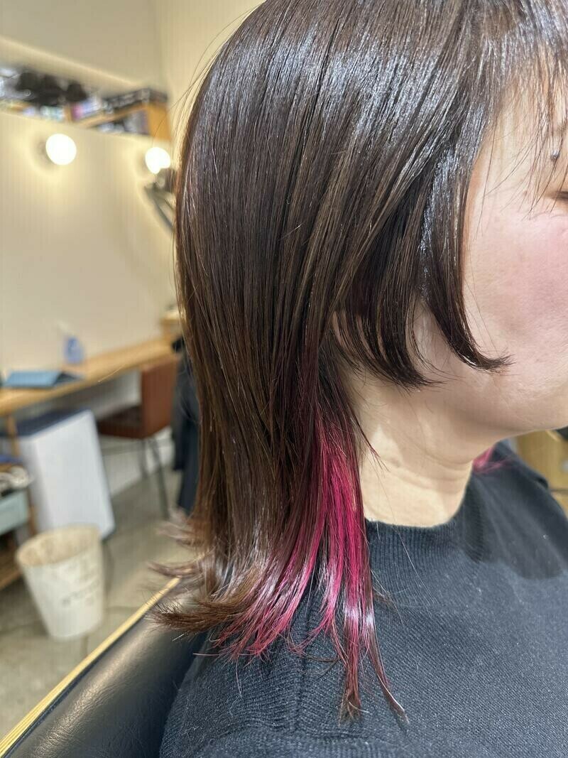 年に1回のストレートパーマで扱いやすさをキープし、内側にはさりげないインナーピンクをプラス。